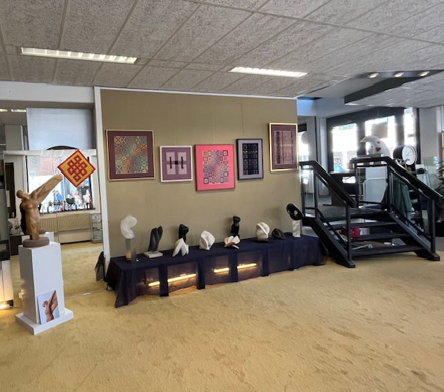 Bij Varia exposeren per maand gemiddeld 30 kunstenaars. Hun werken hangen en staan verdeeld over twee grote etages en omdat iedereen graag beneden wil hangen maar dat helaas niet mogelijk is, hebben we sinds december 2024 beneden, mooi in het zicht, één muur gereserveerd voor de kunstenaars van de maand.