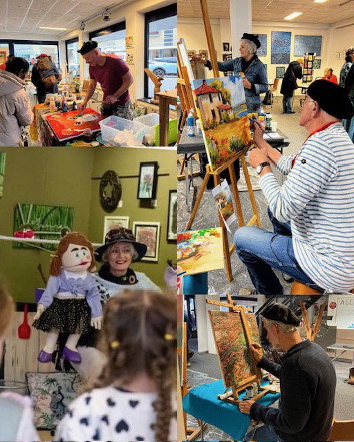 Zaterdag: Immie Schilt, fijn borduren, - Coen Robert Kokkeling, abstract, - Jaap Zuiderwijk, olieverf, - Toos Wien, glaskunst, - Patty van der Ende, Mozaiek en CycleArt, - Malena van der Graaf, schilderijen, - Joke Bianch beeldhouwen, -Rolf van Koppen, fotografie, - Cisca en Jan Koene, beeldhouwen.